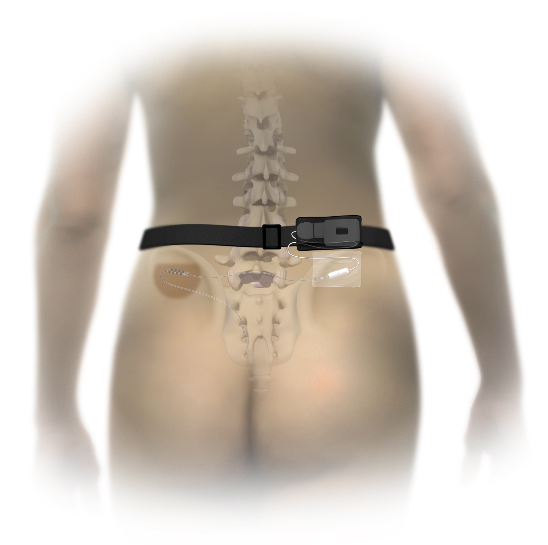 Zunächst wird im Rahmen eines stationären Aufenthaltes die Elektrode eingepflanzt und über ein aus der Haut ausgeleitetes Kabel an einen programmierbaren äußeren Stimulator angeschlossen, den Sie an einen Gürtel befestigt mit sich tragen. Die Stärke der Stimulation kann mit einer App selbst eingestellt werden.